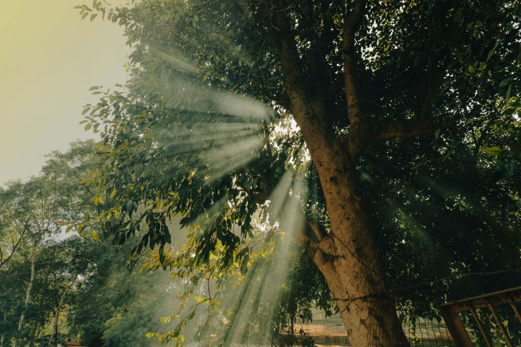 I am standing before a huge ancient tree, I am pulled into the inside of the tree, inside the trunk. I see a green light shining within the tree and the information transmitted in the light is transmuted from to Sun to feed the tree, and give energy. This light language is now encoded in me, and shared with the community of trees, shared with me from inside the tree.
