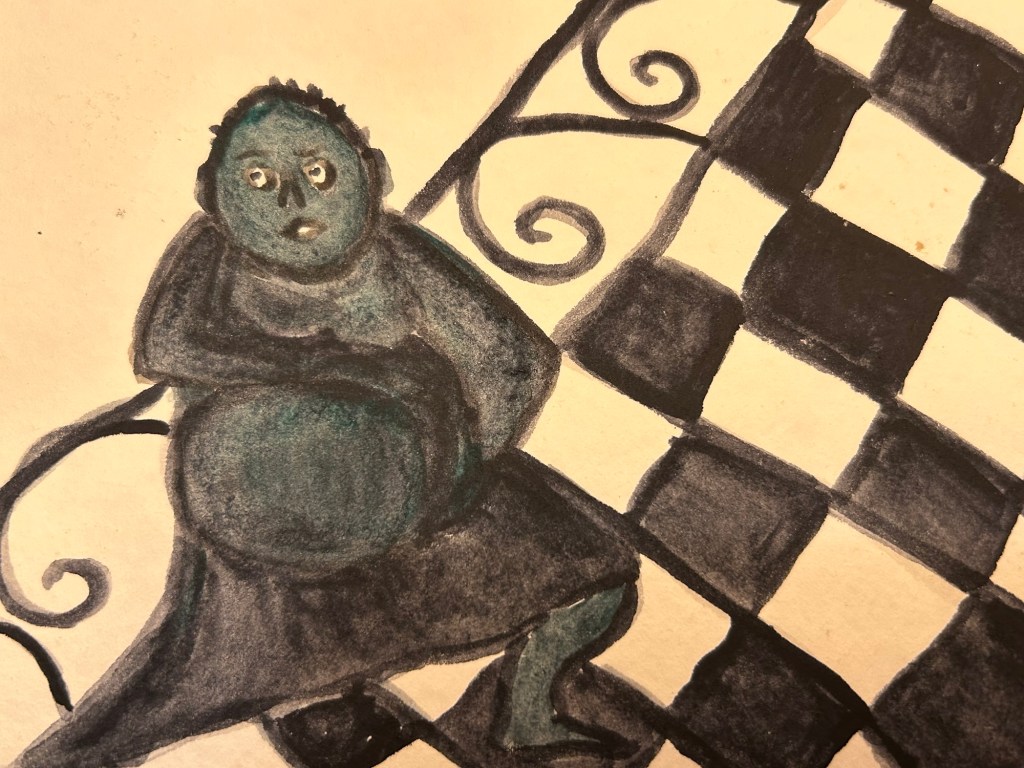 Last night in dreaming, I was time jumping into the past, traveling through house after house going easily through walls and windows until I reached the time I was tracking in the 1800’s to a village in Ireland. The second story building I was moving through became solid suddenly and when I went through the picture window, the glass broke and I fell to the ground. I was time tracking movements of a wild white horse, and my journey had brought to this time and place. I could see the worn deer trail alongside a railroad track and caught a glimpse of the gorgeous white horse ahead, who took my breath away, and my heart skipped a beat. I knew the path I must follow to catch up with this otherworldly horse, but first I must mark where I came through in my time travels, so I could return again to my own time. I walked back to find the broken window where I had fallen into this time in the 1800’s. There in the street looking up at the broken window was a couple, who I knew to be connected to the good folk. They said, “Yep, this is the place!” I looked carefully at the window and felt something was off about it, and decided to walk a bit further up the street, and found that the blue ornate building I had entered through was there but the window was no longer broken. Some faery mischief was afoot, the couple was trying to trick me to entering another timeline beyond the one I had travelled. I called them on their trick, and said they would need to make an offering for a dumb supper at the crossroads in order to make amends to the spirits of the otherworld.