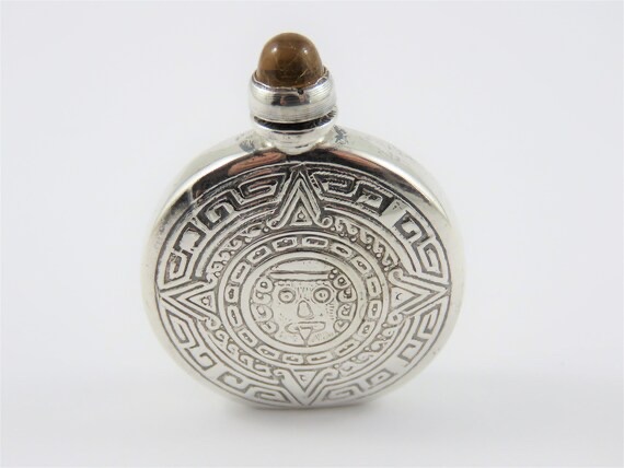 I scootched over and began digging. Under the Earth a glimpse of silver appeared. I uncovered a round silver treasure embossed with an Aztec Sun calendar. It had an amethyst stone lid that topped a silver dabber for perfume. I was so excited to find my treasure, that I hurried inside to show someone, and ran into my older sister at the gate to the back yard, who was angrily walking away from the house. I showed her what I found, and held out my little hand. She grabbed it from me, and said, that’s mine!